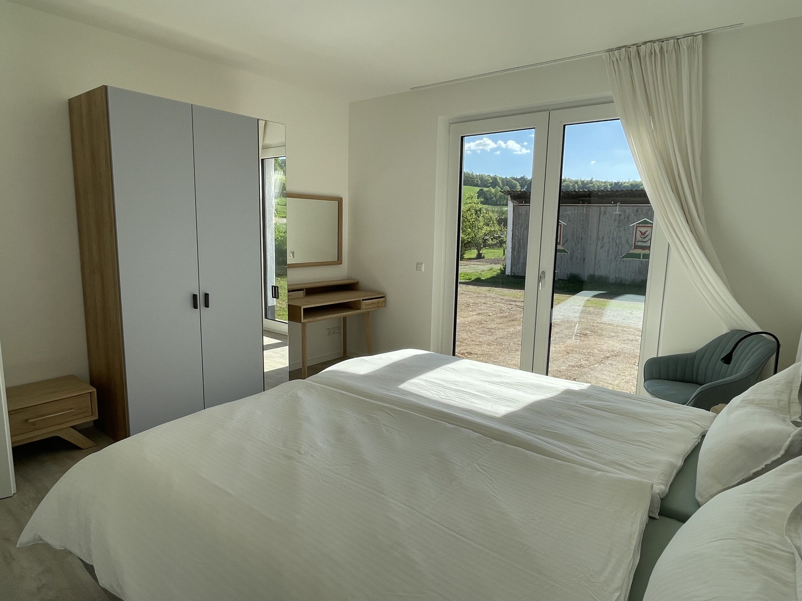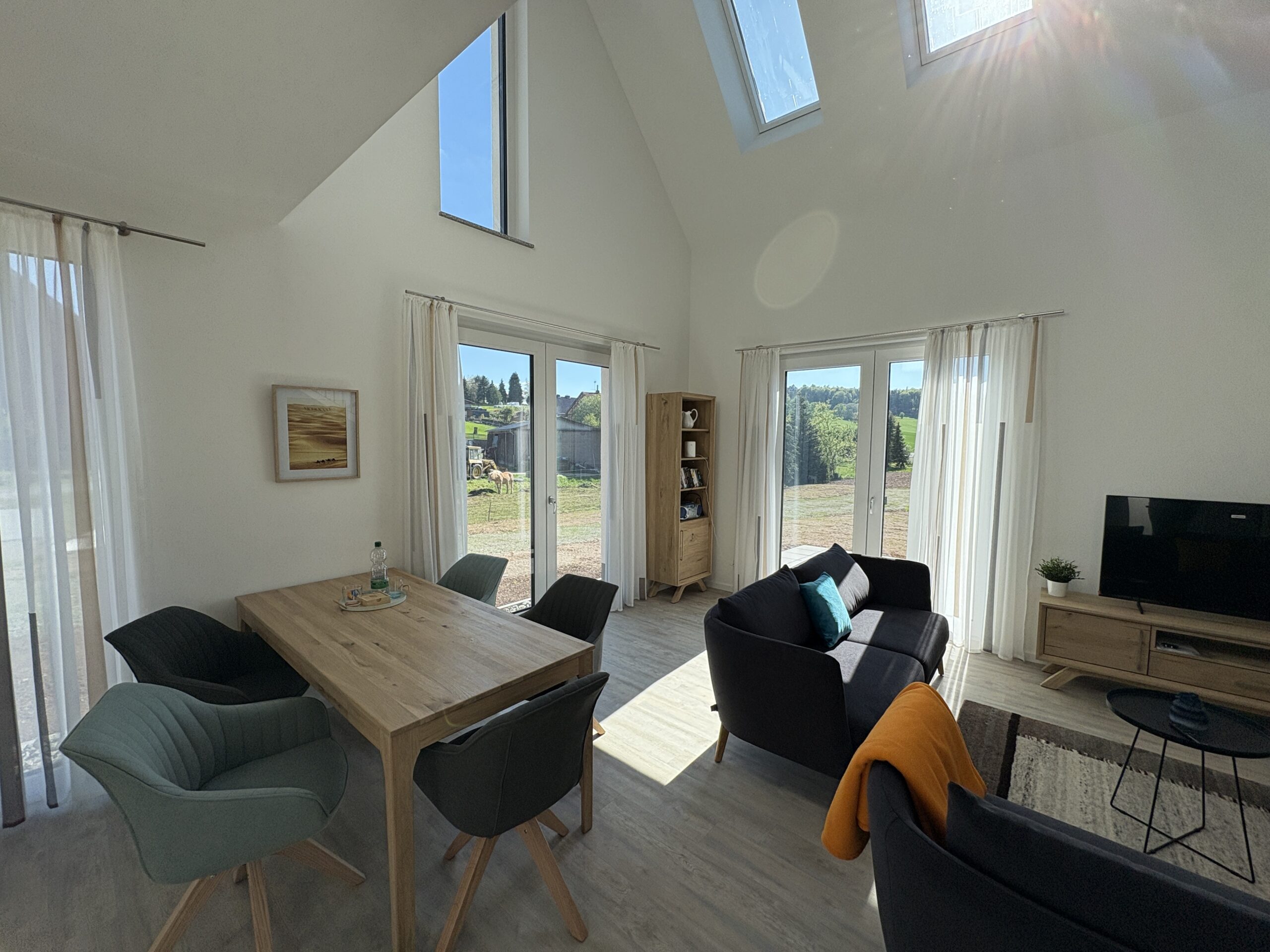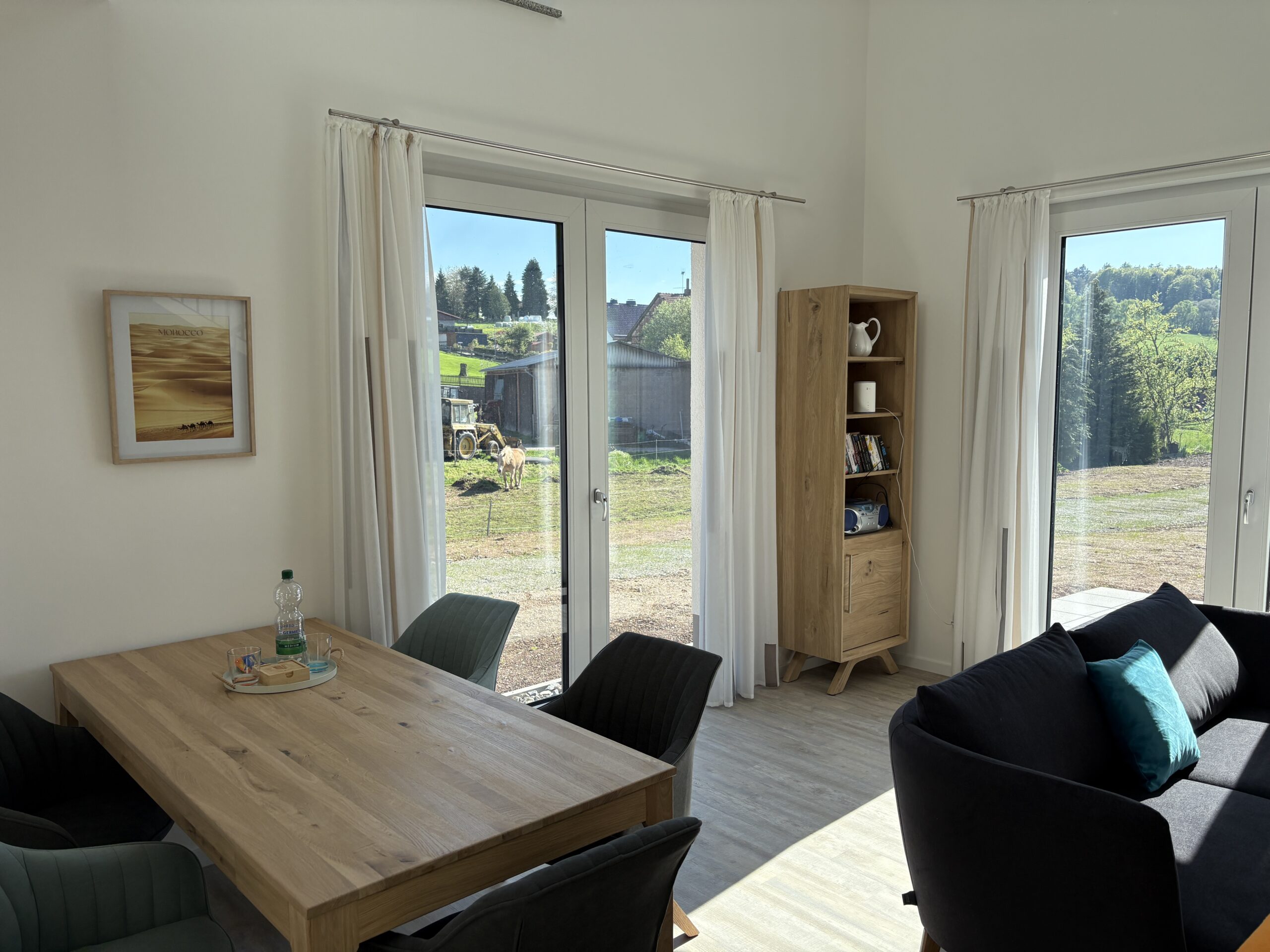 Ein echtes Highlight ist die sonnige Terrasse, die wie eine kleine Bühne zur Natur wirkt. Ob Frühstück im ersten Licht des Tages, ein ruhiger Nachmittag mit einem Buch oder ein Abend unter freiem Himmel – hier entstehen Momente, die man mit nach Hause nimmt. Die Umgebung ist ruhig, sicher und ideal für Spaziergänge, kleine Entdeckungstouren oder einfach zum Durchatmen.